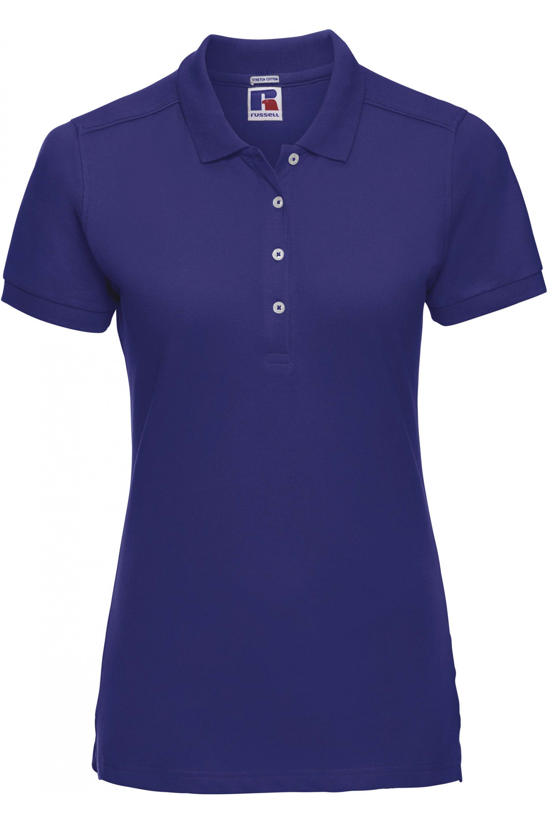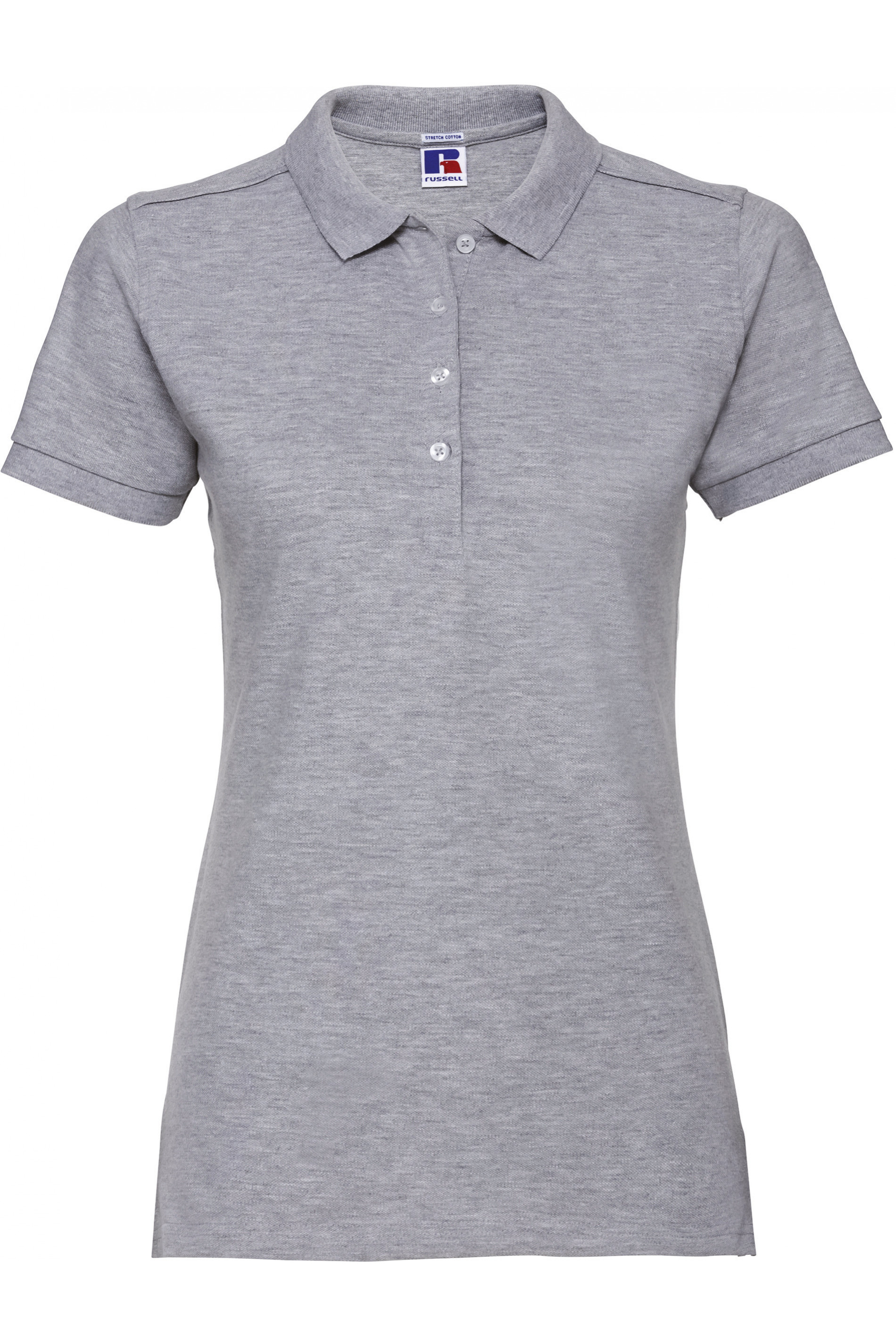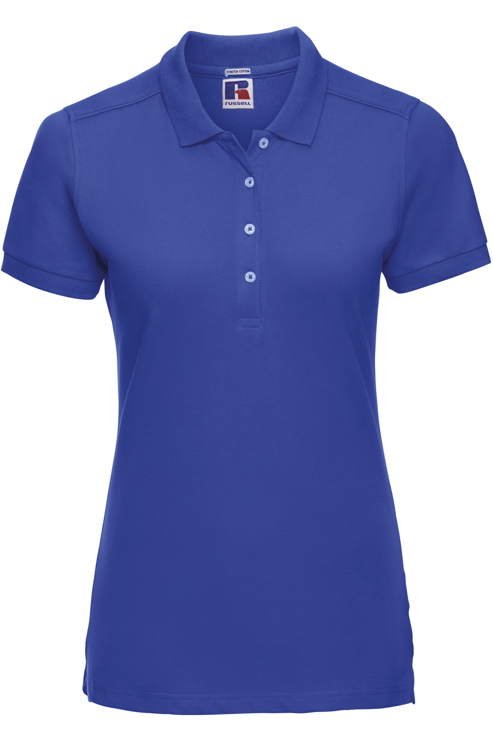 95% algodão / 5% Lycra®. Carcela com 4 botões em contraste. Colarinho e acabamento das mangas em malha.