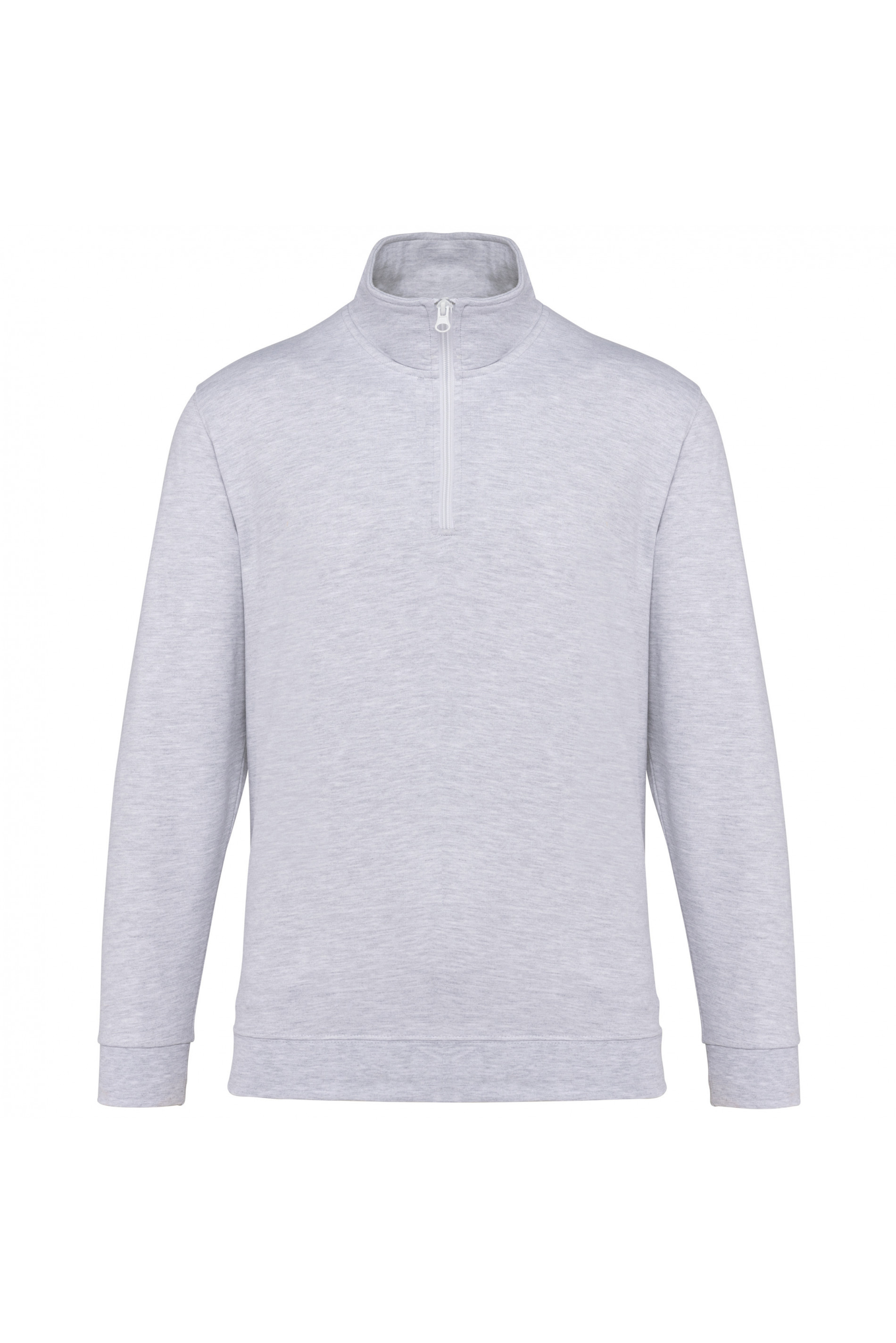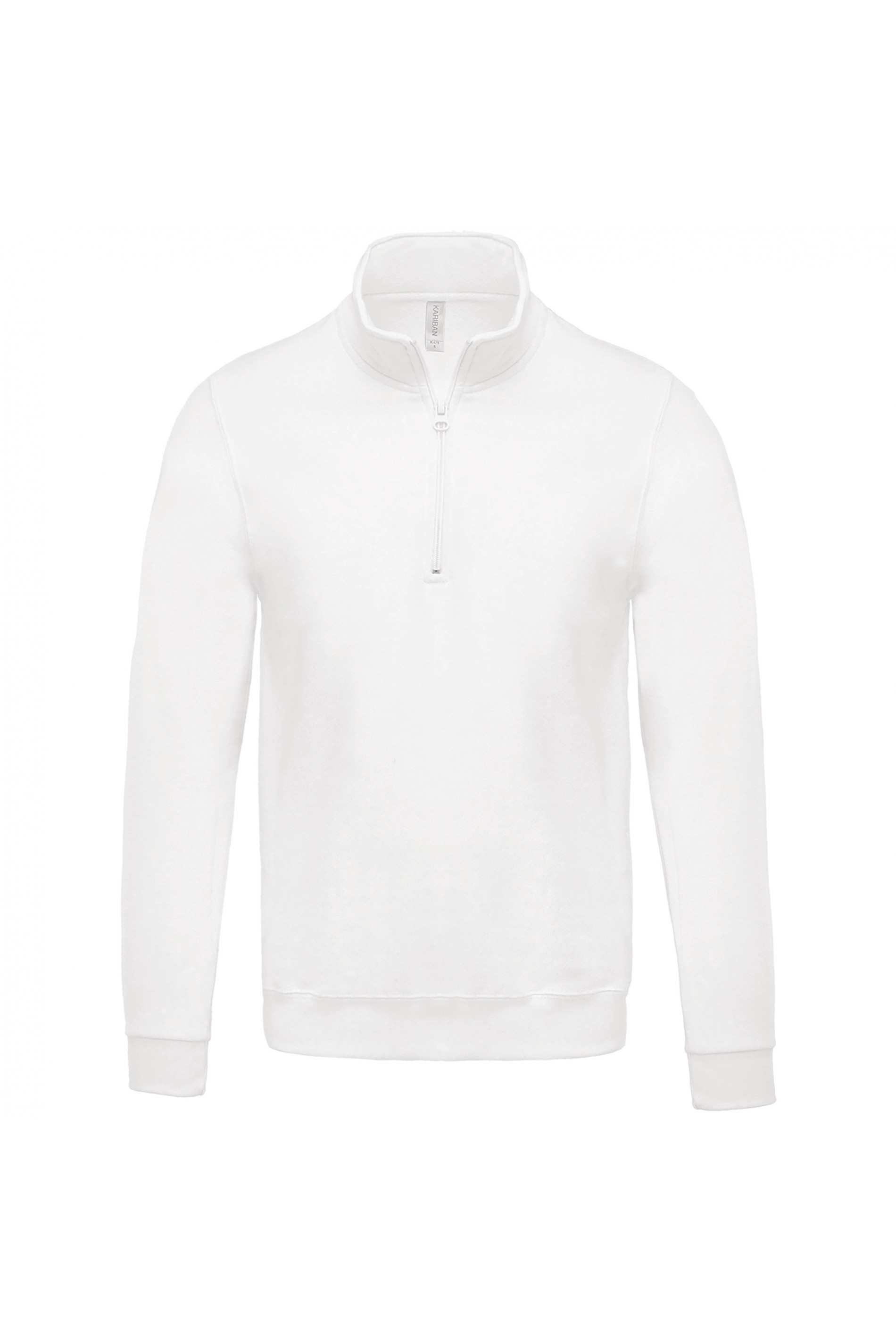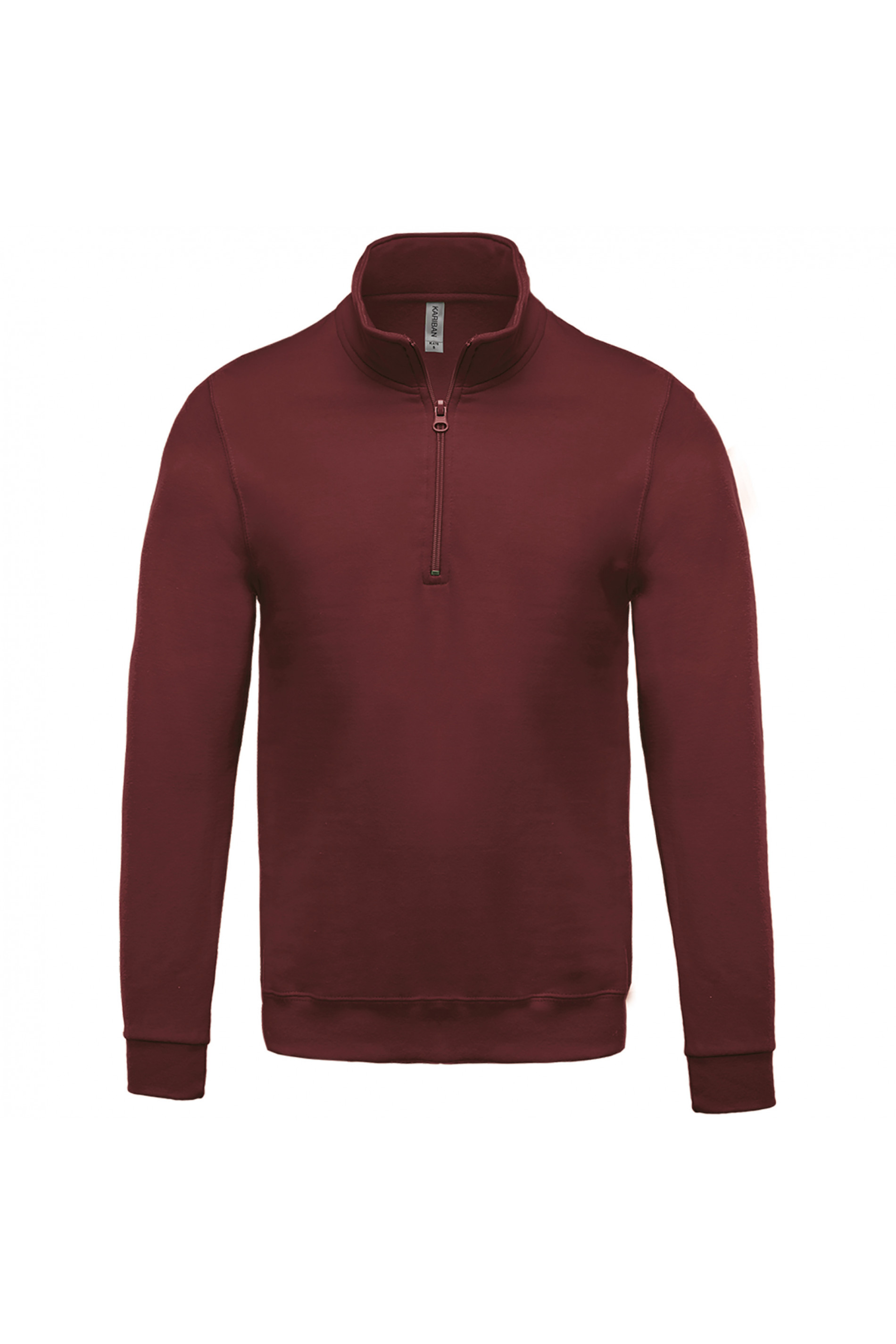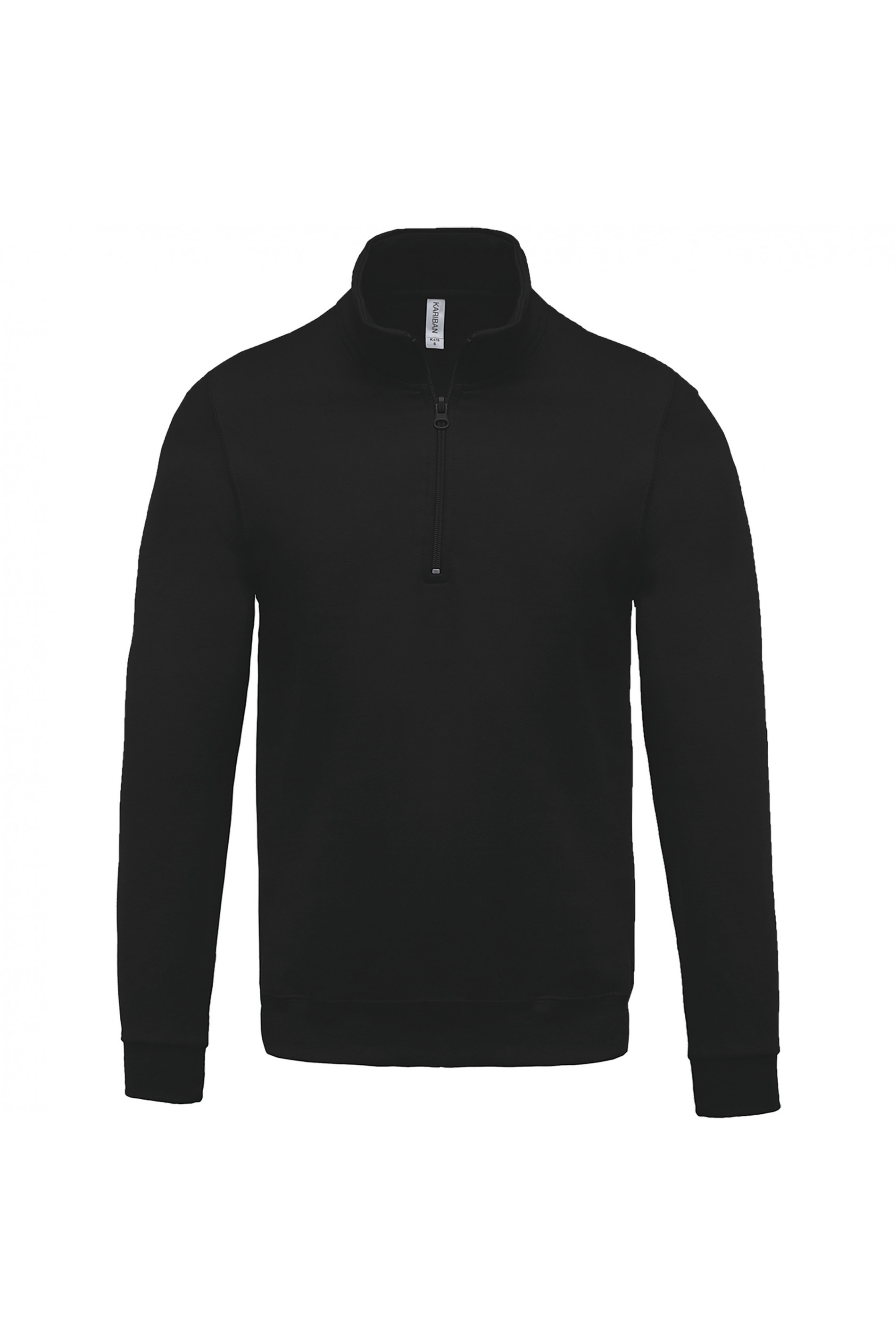 80% algodão/20% poliéster. Interior cardado. Mangas direitas. Decote com fecho e tapa-costuras. Acabamento da manga e cós em malha rib.