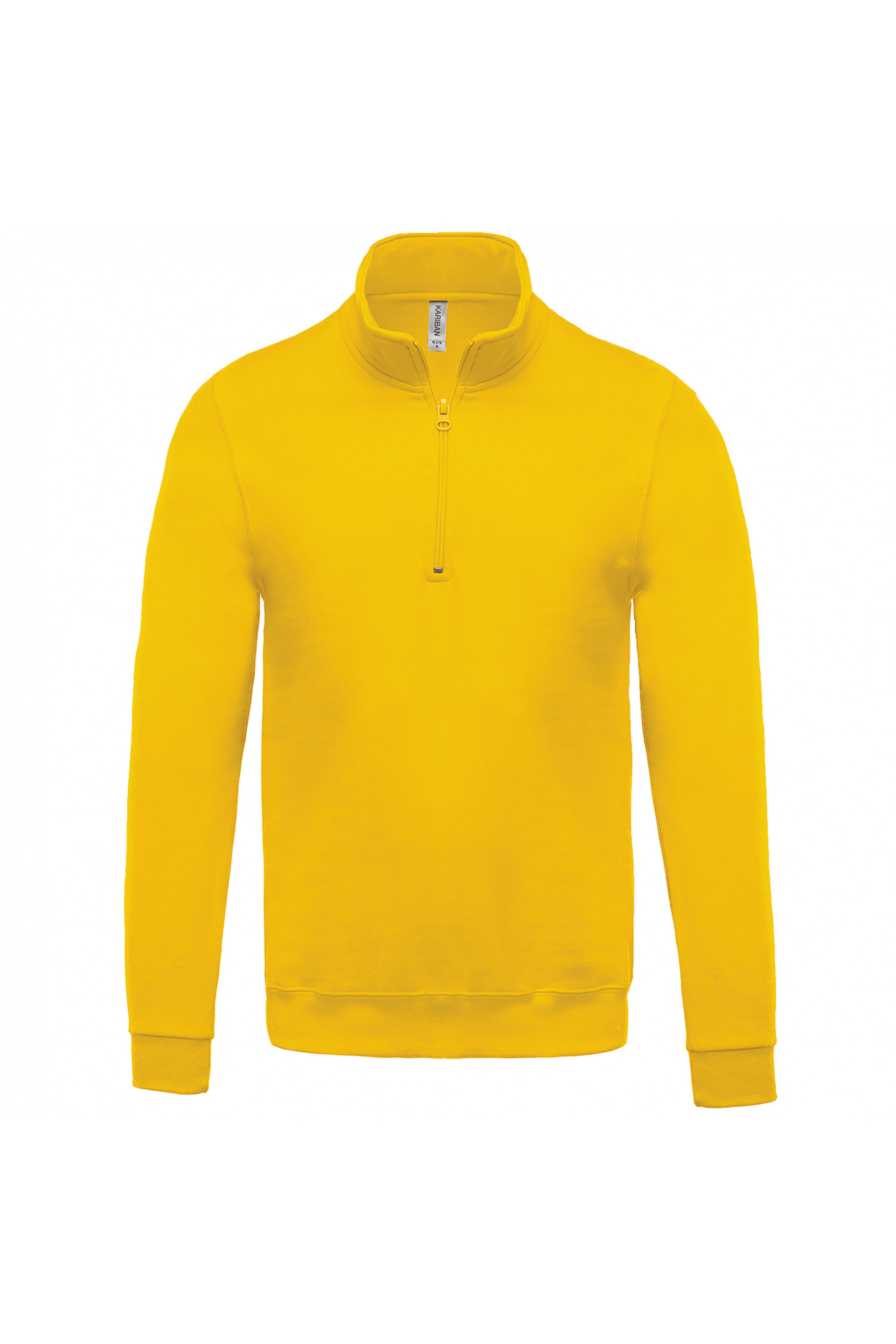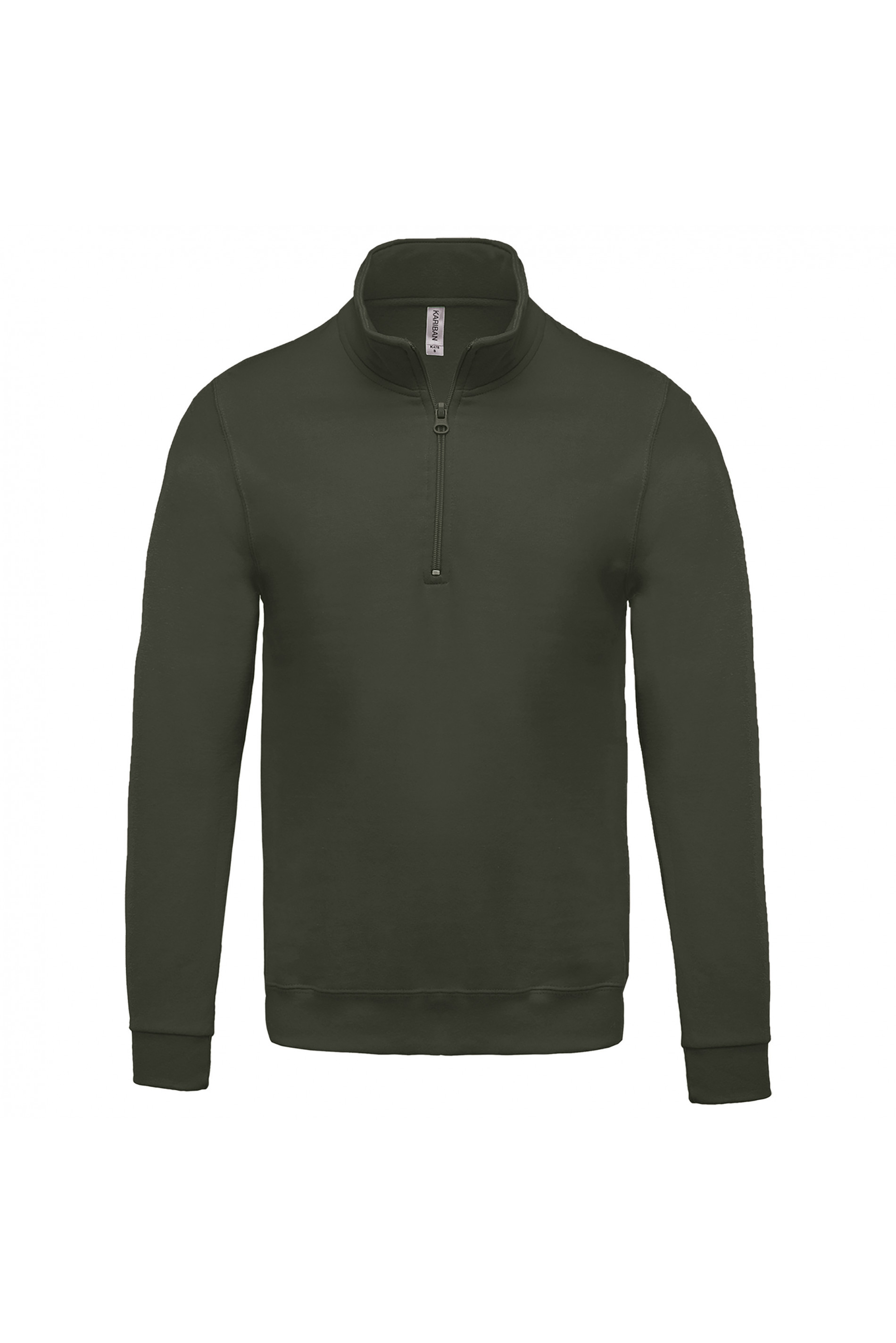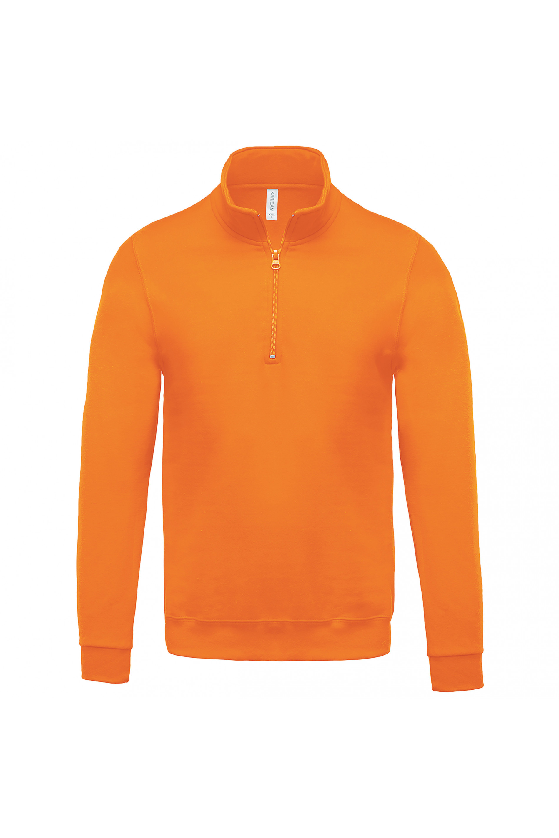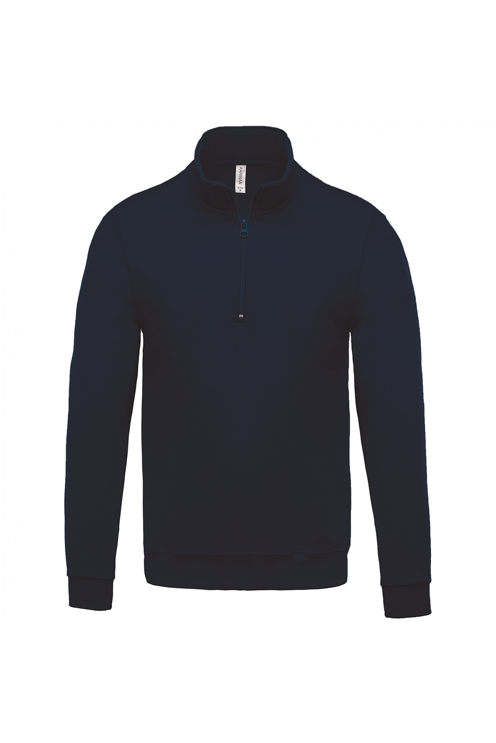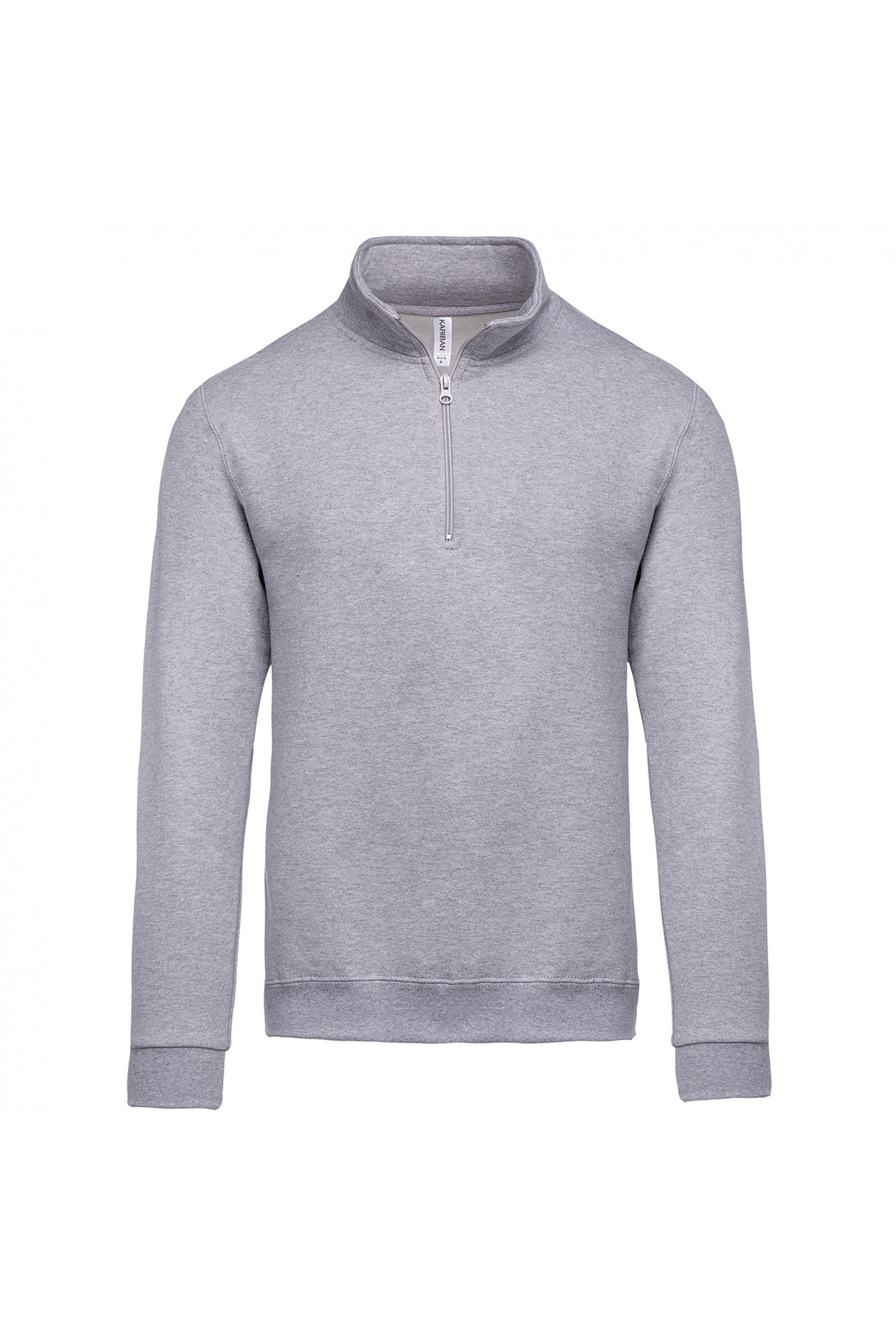 80% algodão/20% poliéster. Interior cardado. Mangas direitas. Decote com fecho e tapa-costuras. Acabamento da manga e cós em malha rib.