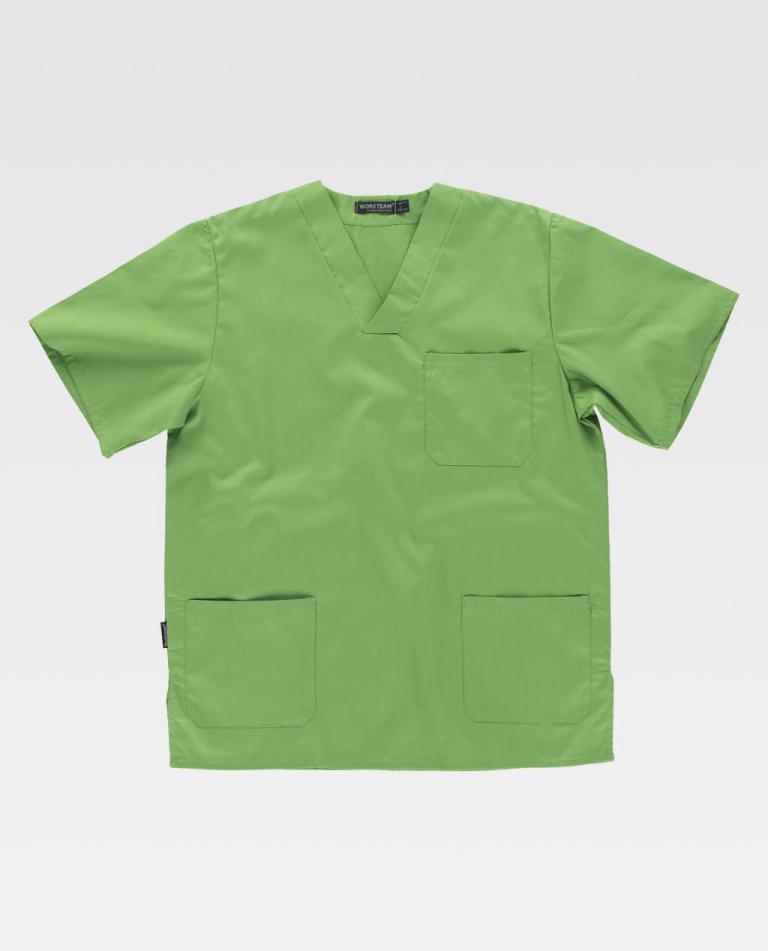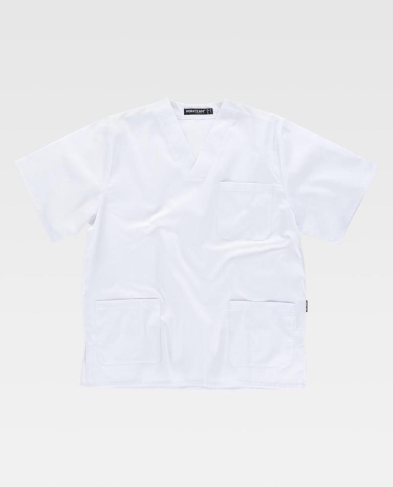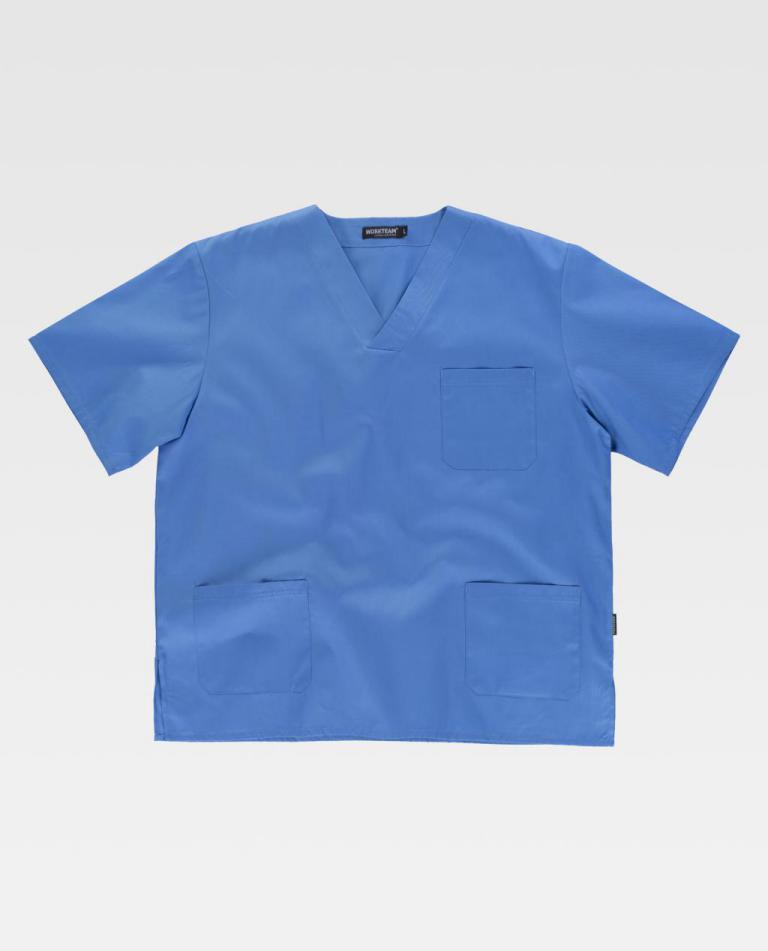 Túnica sanitária unissexo de manga curta e decote em bico cruzado
